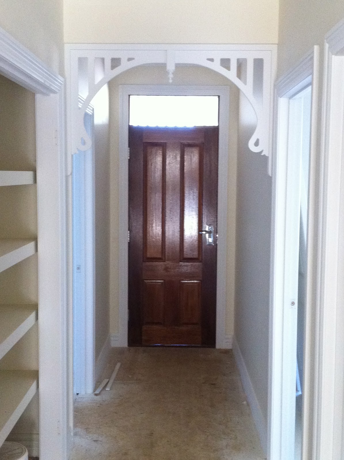 We did manage to get up to the house on Saturday, and it looks like they have all been working very hard over the past week. Both the outside and the insides have had a few coats of paint put on, and the external doors have all been stained.